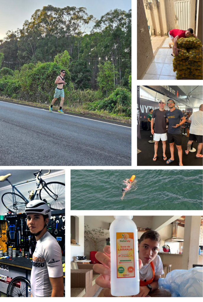 “Vender e fazer esporte é o que eu mais fiz na vida. Aí ‘o trem explodiu’ na internet. Muita gente começou a se inspirar em mim, e eu precisei manter a disciplina. Quando gravei o primeiro vídeo, as inscrições do Ironman já tinham encerrado, mas eles gostaram da minha história e me deram uma vaga. A Alquimia da Saúde veio me apoiar com os suplementos, e outro parceiro me presenteou com uma bicicleta, porque eu nem tinha como treinar ciclismo. Em novembro de 2025, tive a oportunidade de conhecer o Ironman 70.3, em Aracaju, com meu treinador Adriano Sacchetto, apenas para assistir. Quando cheguei lá, tive certeza de que era isso que eu queria e também de que eu era um pouco maluco. Vi que precisava me dedicar de verdade e que não podia desistir.”